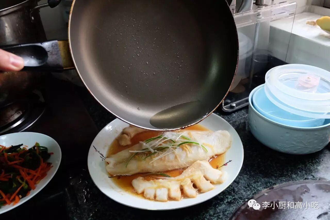 最后,端出蒸好的鱼(注意烫手),热油,淋到蒸好的鱼上;