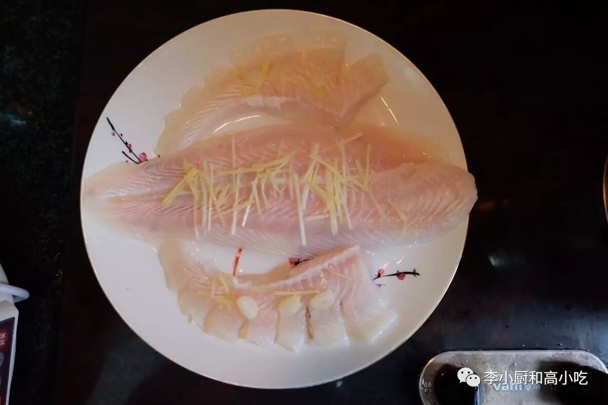首先,将买的龙利鱼柳解冻,放入盘中,加入葱姜丝;