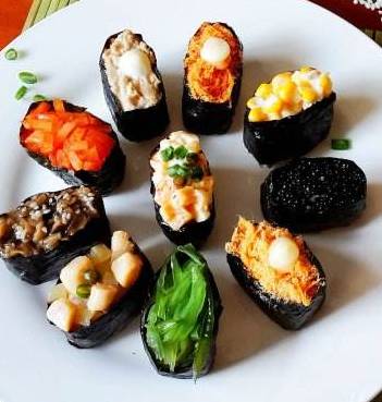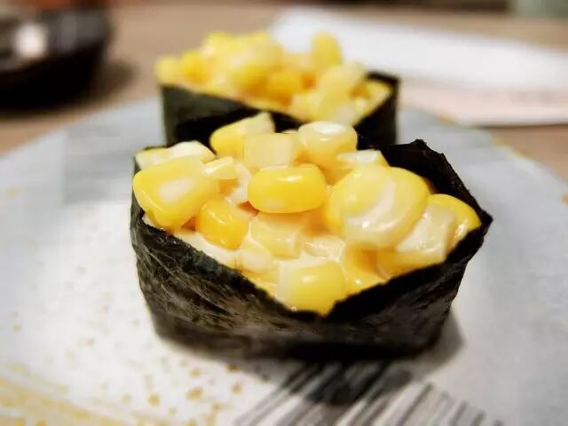 水嫩的玉米粒淋上白色的沙拉酱,与香甜米粒清脆海苔的巧妙碰撞。