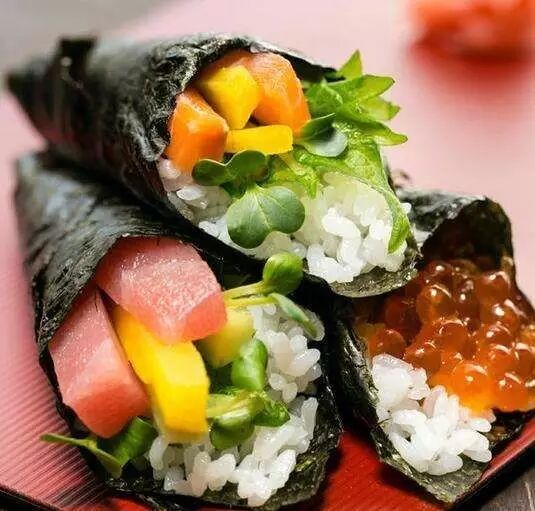 把寿司卷成圆锥体状(类似冰淇淋甜筒),比较难用筷子挟,所以通常用吃。