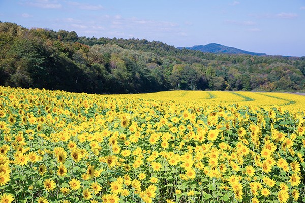 向日葵花海也是北海道标志性的风景,但向日葵的盛期通常都在7月下旬至8月的中旬。在千岁市郊的丘陵地带有一片花海被称为“调色板之丘”,10月依然能有机会看到大片的向日葵。虽然以机场闻名,但千岁其实有着和美瑛富良野一样的风景。