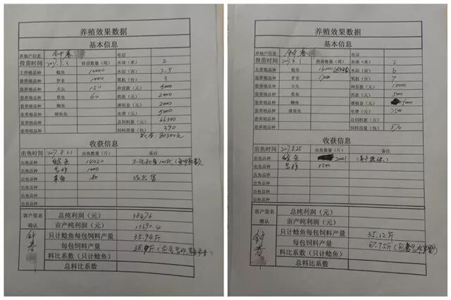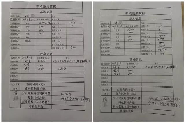 (以下为粤海公司技术员收集的部分养殖数据,有客户签名认可)