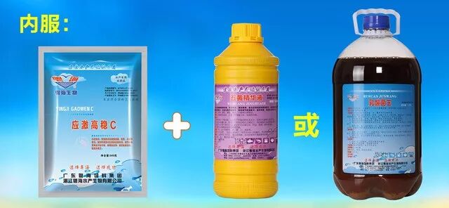 (3) 养殖过程每15天用金碘消毒塘一次,平时进水要用过滤网拦截杂鱼进入,进水后马上要用金碘等消毒池塘,消毒后12小时内补放EM调水王或富水美等有益菌。饲料每隔15天连续三天拌喂粤海应激高稳C、五黄精华液和乳酸菌王等。