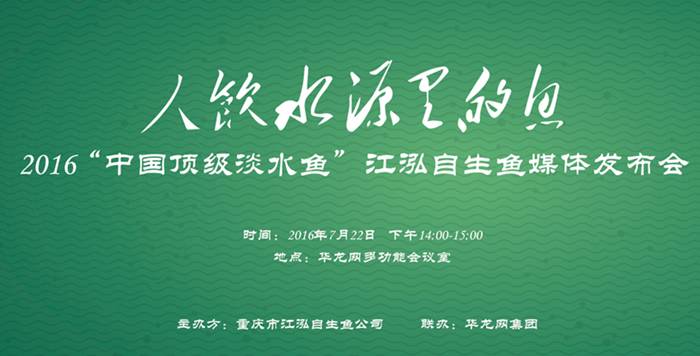 2016年7月22日,“中国顶级淡水鱼”江泓自生鱼将在华龙网举办发布会。届时,江泓自生鱼将与嘉宾共同探讨中国渔业发展建设趋势,解读江泓自生鱼就渔业安全问题所采取的解决方案,分享在渔业领域取得的科研成果,介绍自身产品。