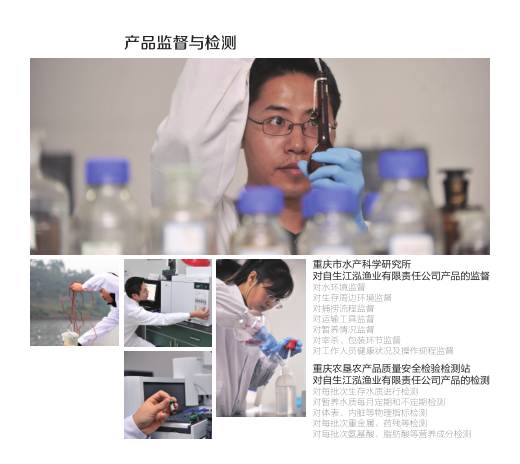 除了品种的多样化,江泓自生鱼在质量上也对鱼进行了严格把关。为了保证每条鱼的品质,该公司的每批次水样、鱼样都委托重庆农垦农产品质量安全检验检测站检测,每条江泓自生鱼从捕捞、运输、宰杀到包装等全过程接受重庆市水产科学研究所监督。为市民提供绿色健康的鱼产品,将稀缺淡水鱼送上市民餐桌。