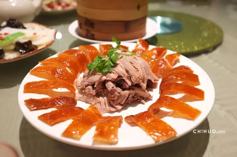 吉嵘专卖北京吊炉脆皮烤鸭。但片法是改良过的,先片出一圈鸭皮,再片出一碟鸭肉,因而油脂更少,鸭皮酥脆,鸭肉滑嫩。