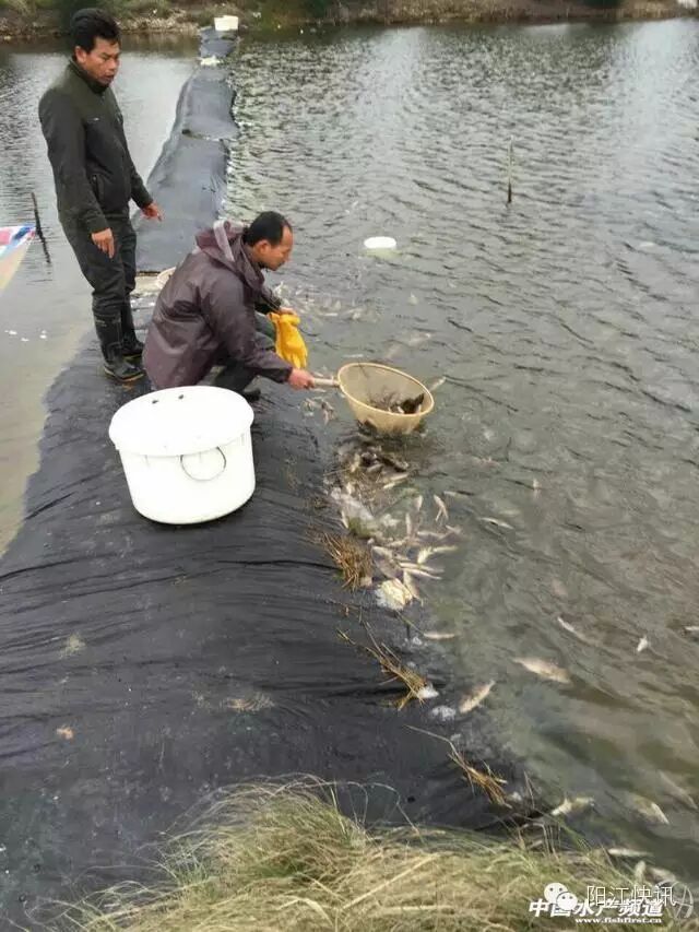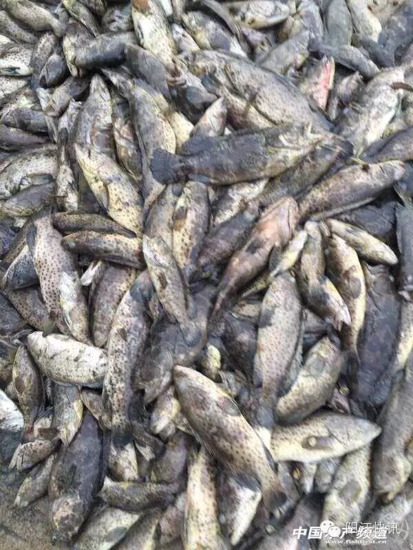 阳江市阳西县儒洞镇坡尾养殖户廖聪家的海水鱼养殖池塘在经历了1-2天极速及超强度的降温后,池塘的水温升到了3℃,很多橙点石斑鱼和泥猛出现了浮头。工人下塘把冻鱼捞上来统计发现,一共有1000多斤蓝子鱼和7000多条橙点石斑鱼死亡。