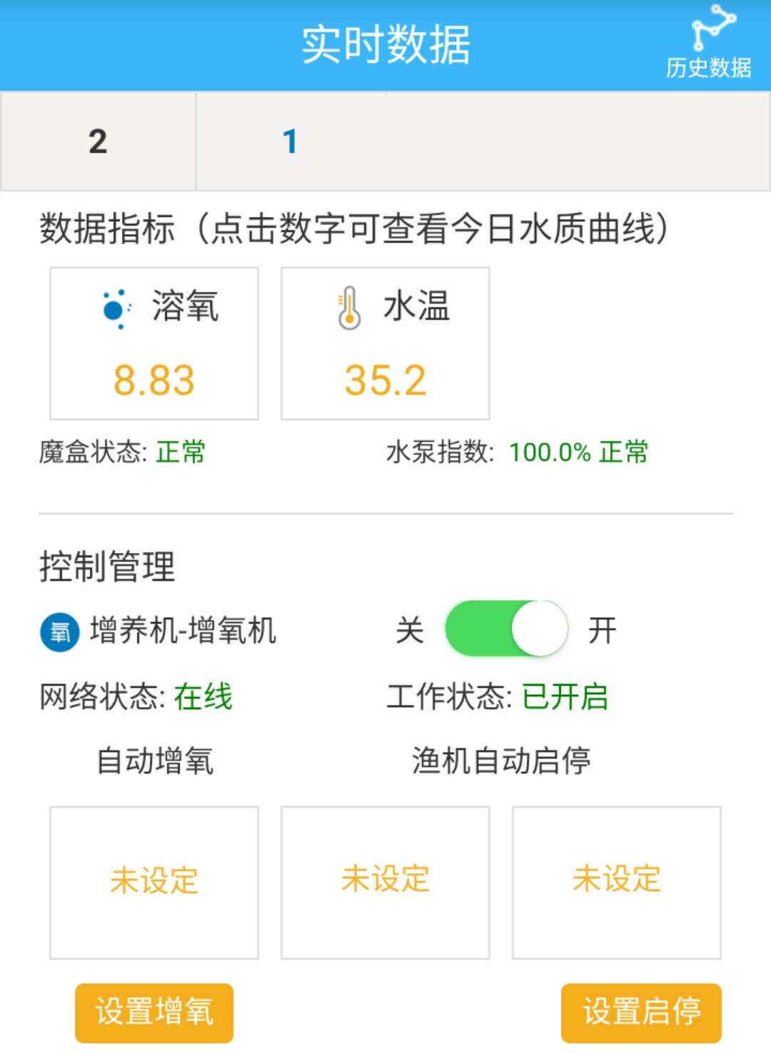 帮邦魔盒是一款24小时实时监测溶氧和水温指标,不管身在何方,拿起手机就能一目了然看到塘里的实时水质情况。即使您身在千里之外,池塘溶氧变化也尽在掌握之中。