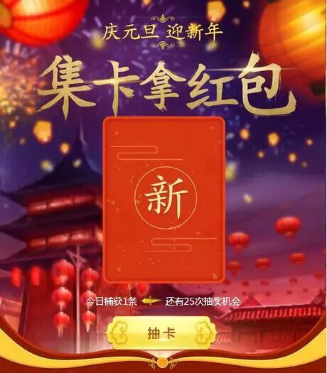 2、集齐五张卡可获得开启现金红包机会