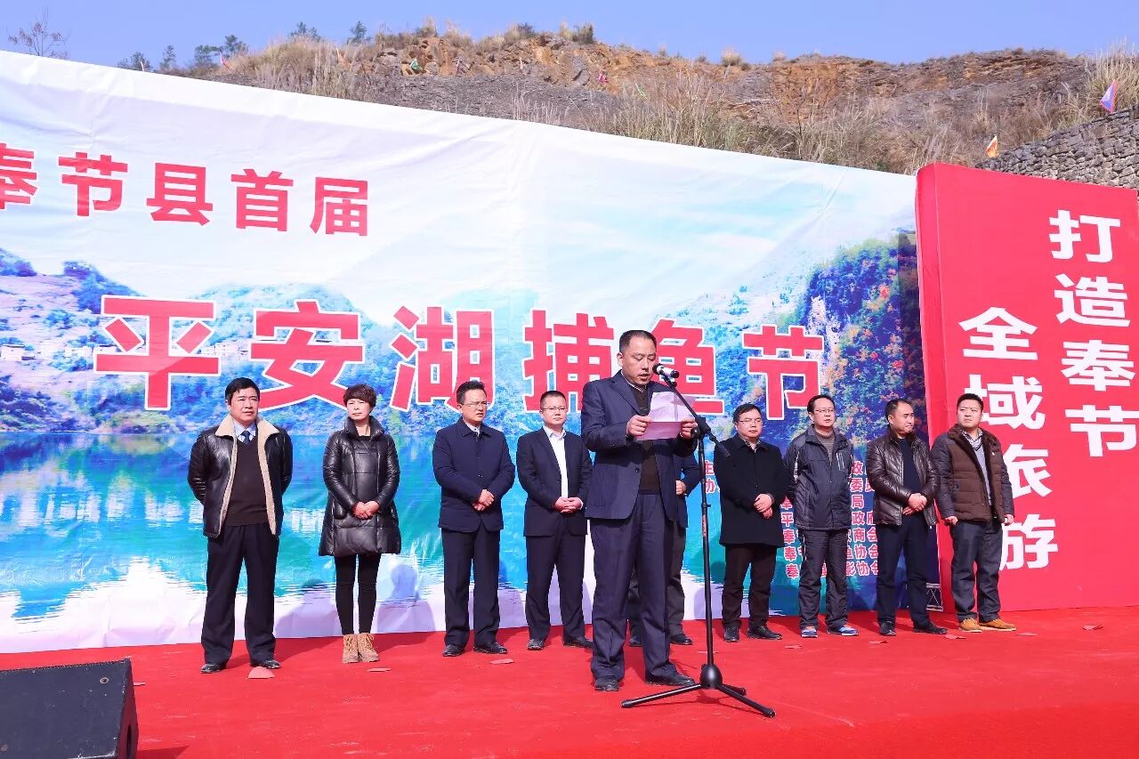“今天我们欢聚在这里,举办奉节县首届平安湖捕鱼节。这是全镇经济社会发展中的一件大事、喜事,既是贯彻落实党的十九大精神,实施乡村振兴战略、打造奉节全域旅游的具体体现,更是推进乡村旅游、促进产业扶贫的重要举措。”