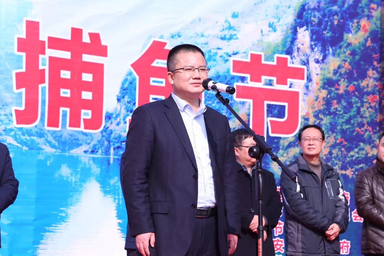 县人民政府副县长李品雄宣布“奉节县首届平安湖捕鱼节正式启动”