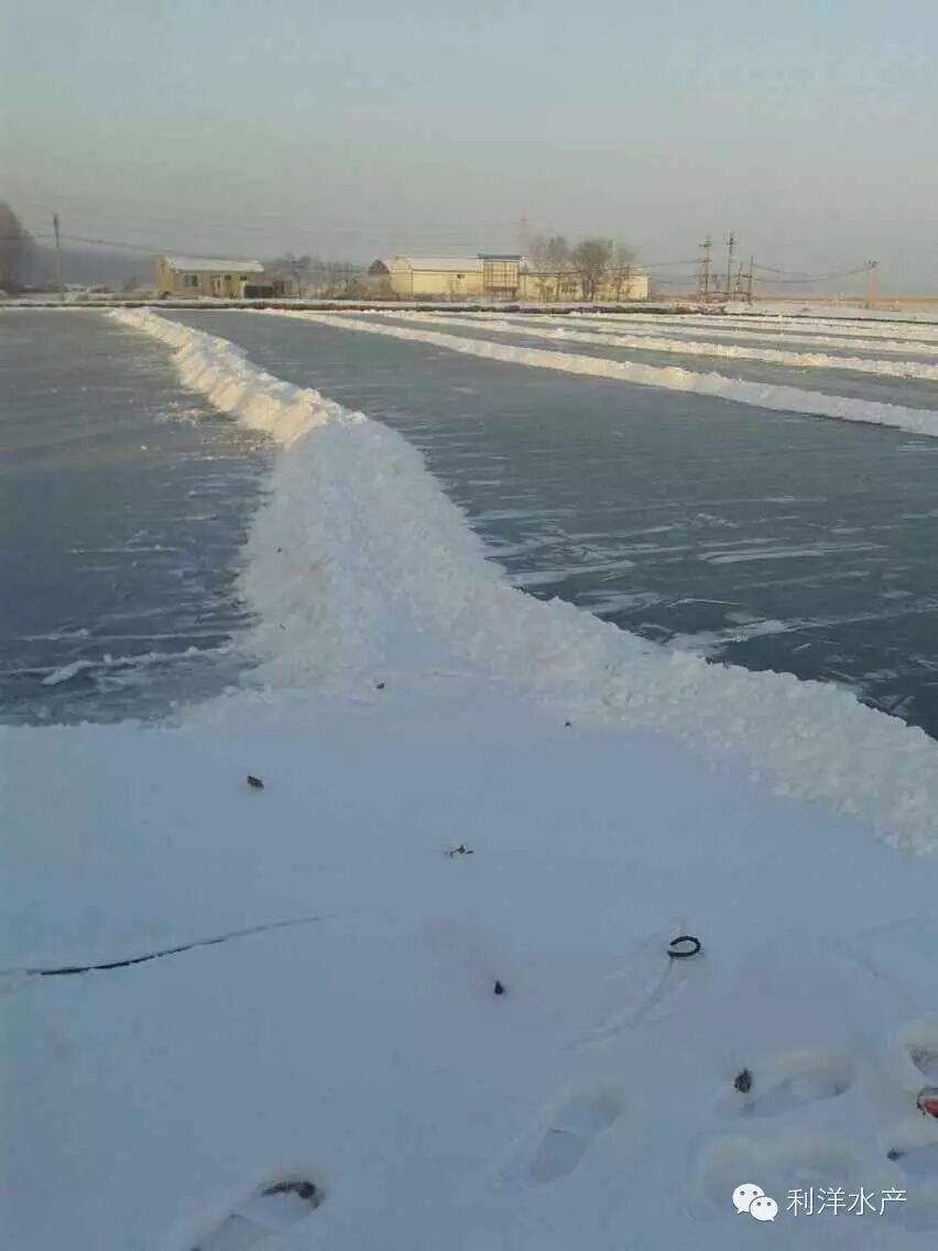 扫雪须看天气,如连续晴天,扫雪面积60%即可,留有部分雪覆盖遮阴,避免冰下藻类繁殖过度,发生冰下气泡病。如连续阴天扫雪面积可达80%,防止冰下水体倒藻,引起缺氧。