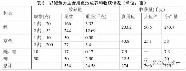我国不少地区群众喜食鲤鱼,而且鲤鱼苗种容易解决,以鲤鱼为主的混养模式在一些地区相当普遍。在鲤鱼为主的混养模式中,通过施肥和投喂精饲料可以获得较高的产量。在放养中常适当增加鲢、鳙放养量,以充分利用池中浮游生物,取得较高的产量和较好的效益。放养情况见表5。