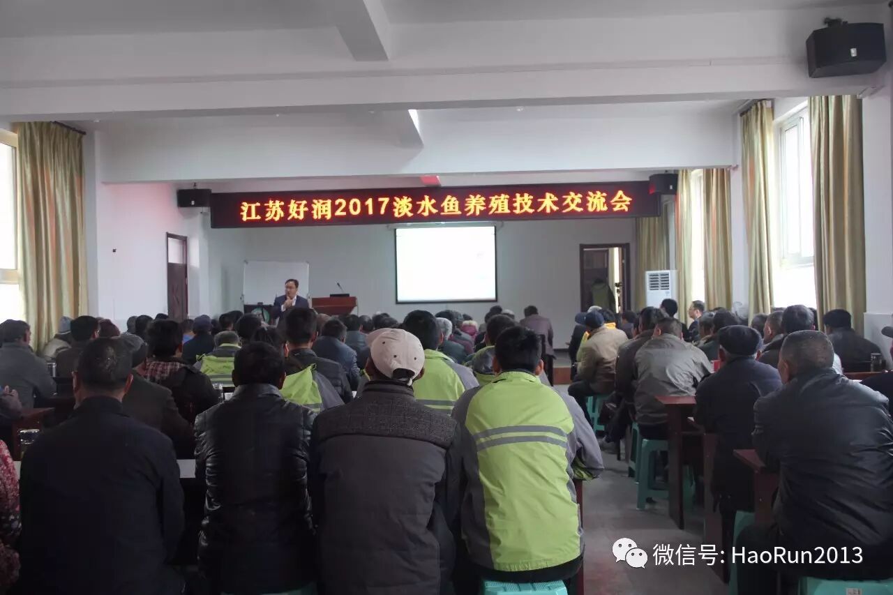在这个油菜花开金铺地,春暖花开燕归来的季节,江苏好润生物科技有限公司邀请了泰州及周边区域200多位淡水鱼养殖朋友们前来参加“淡水鱼养殖技术交流会”。会议主题由刘爱民总经理以“如何防控好鱼的大红鳃”为重要技术论点为大家提供科学有效的解决方案。会议第二项内容是由好润生物饲料公司孙总宣布“2017好润饲料销售政策”。