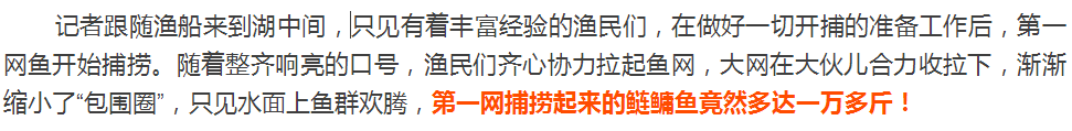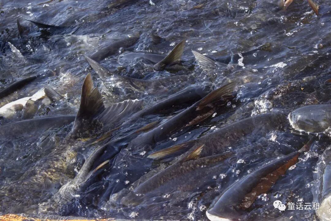 水面上就像沸腾了的开水,鱼儿不停地跳跃着、翻滚着,渔民们欢笑着,今年又是一个丰收年。