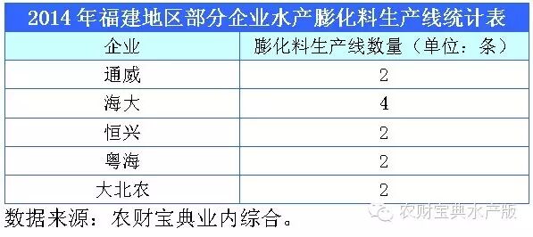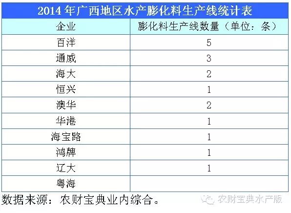 据不完全统计,2011-2014年,广东新增膨化线85条左右,其中海大10条,通威11条(含收购),粤海6条,南宝5条,恒兴4条,新希望六和4条,旺海4条,澳华3条。这一时期,广东有一半以上新增膨化线集中在以上8家企业(集团)手中。