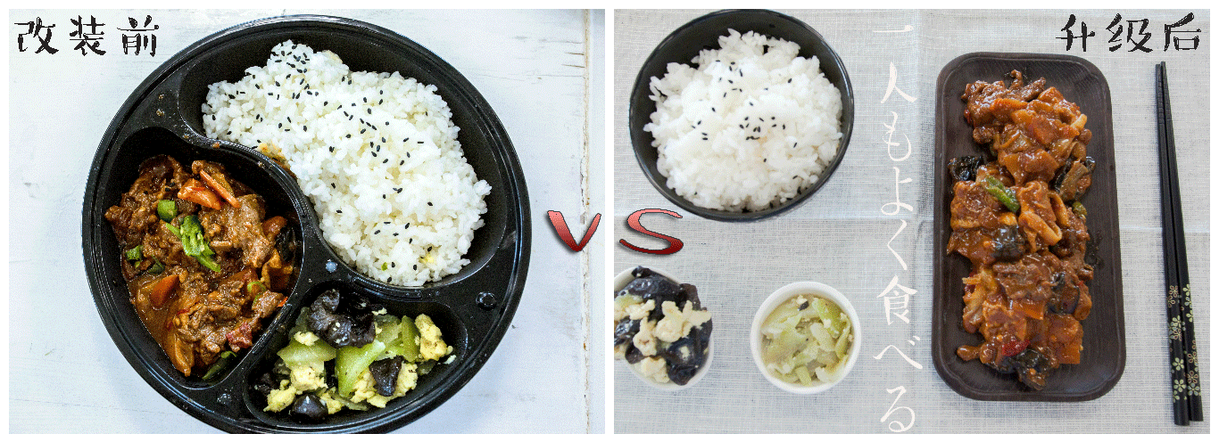 我们把一盒价值15.9RMB的盒饭瞬间变成高端大气上档次的日式风一人食。估价——40RMB!