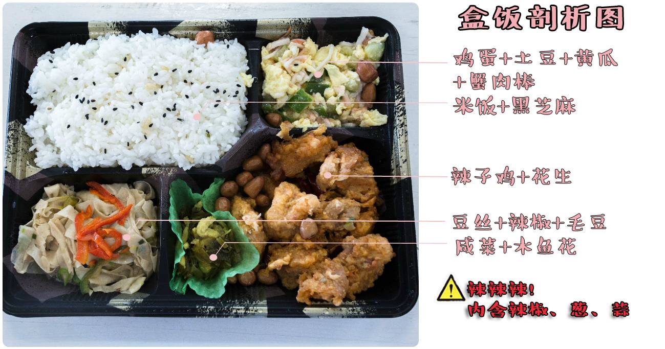 编编心声:虽然盒饭的颜值不是很高,但是辣椒真的可以承出它的气质!咸菜满分,如果花生能换成辣子鸡就好了!