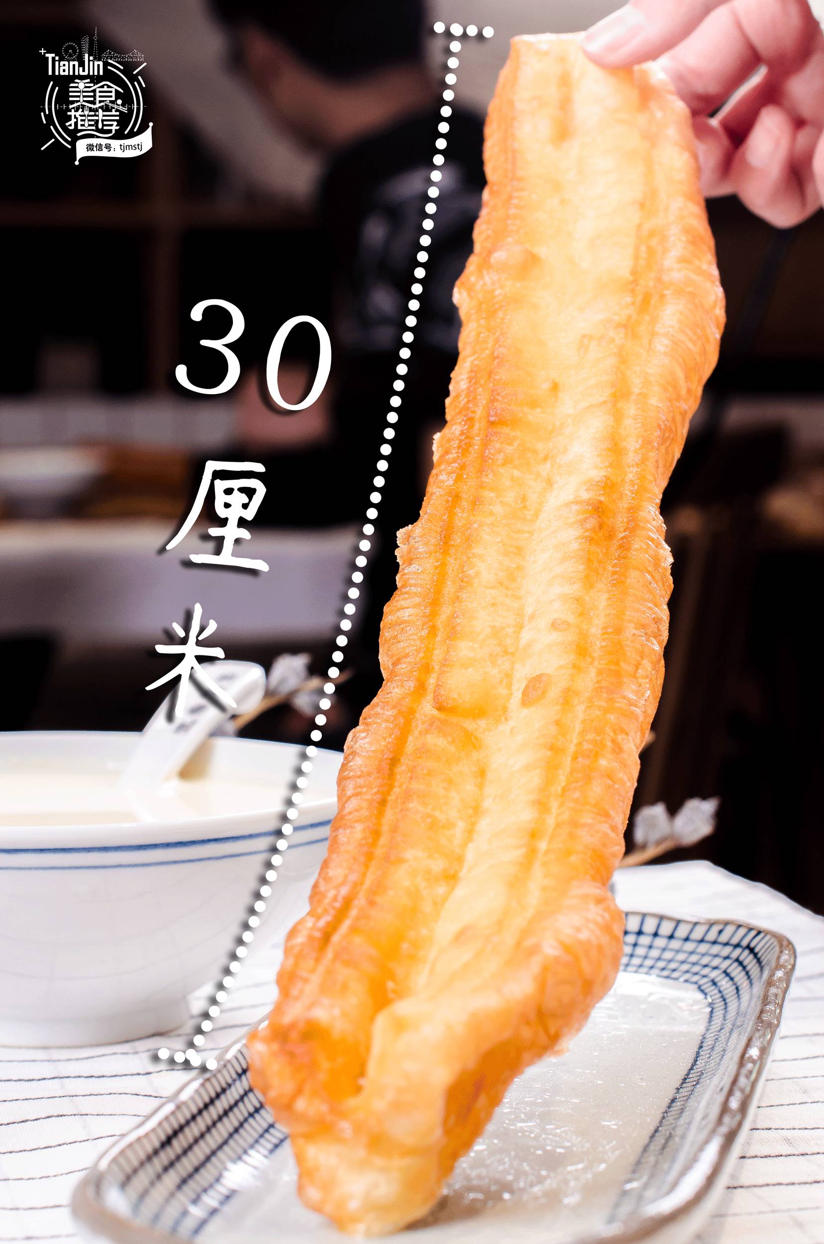 足足30cm!两个人分着吃也满足!对了,油条配上特制的酱油膏更加凸显酥脆,但蘸豆浆吃绝对是天津娃娃的最爱!