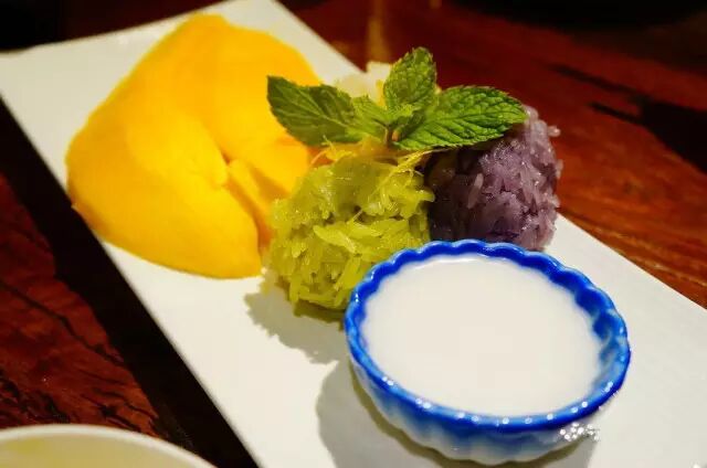 三色糯米饭视觉上让人看着很有食欲,口感十分柔软,芒果个头大,甜甜的不涩口,蘸上椰浆美味恰当好处。