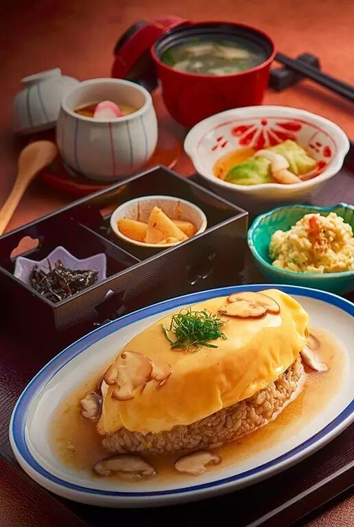 作为日本在二十世纪初期自创的最具代表性的一道洋食,一直以来,人们都对蛋包饭有一份情怀。金黄柔滑的蛋皮,包裹着橙红色的番茄酱鸡肉丁炒饭,用勺子舀入口中。蛋包饭,正是让所有人瞬间能感到幸福的天才发明。