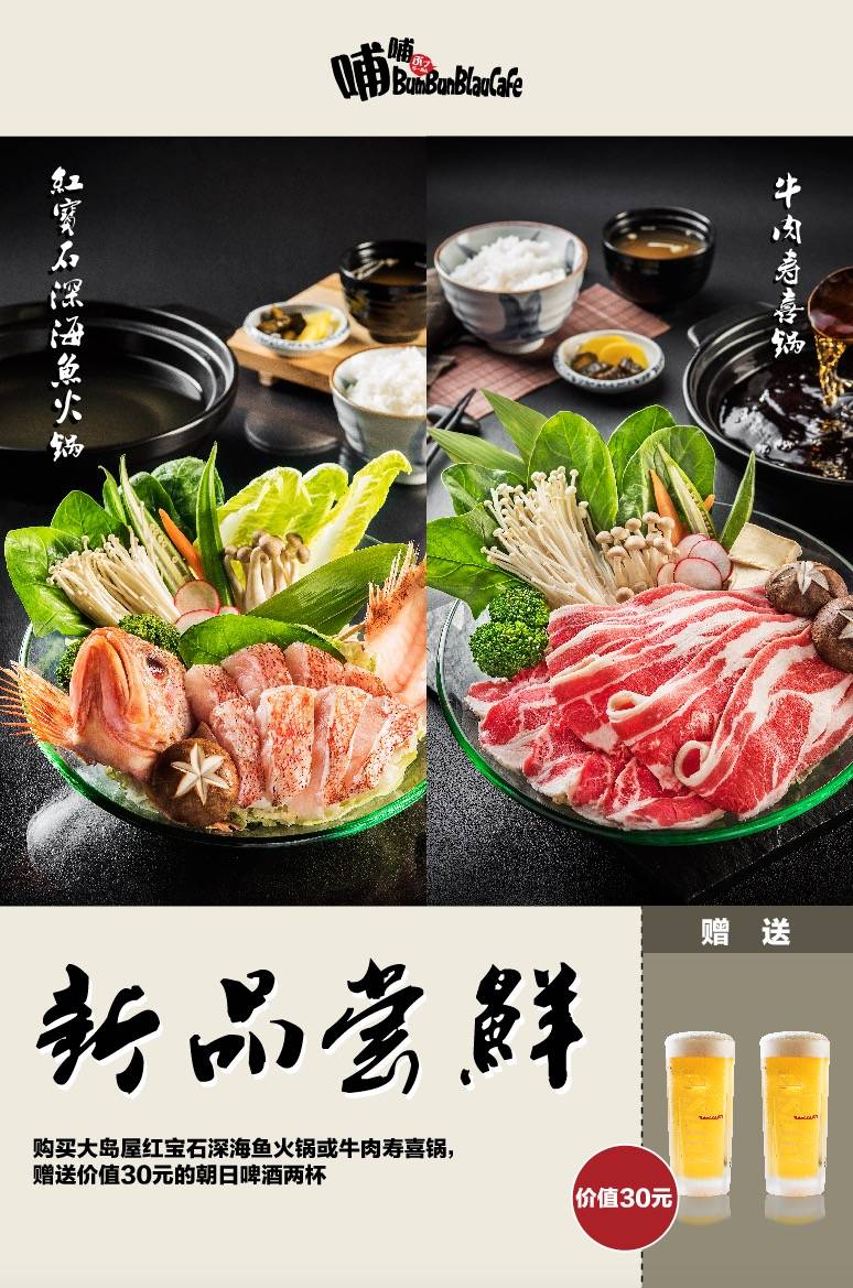 购买大岛屋红宝石深海鱼火锅或牛肉寿喜锅,