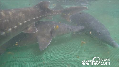 郑维中:从左边开始是西伯利亚鲟鱼,史氏鲟鱼和俄罗斯鲟鱼。这三种鲟鱼是目前养殖量最大的三种鲟鱼。