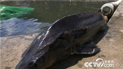 这种既有劲又难抓的鱼就是鲟鱼。鲟鱼全身没有鱼鳞,只有五条纵行凸起的棱线,这个凸起的地方就是师傅所说的骨板,非常锋利,一不注意就能把人的手臂刮伤,所以捕捞的时候要很小心。