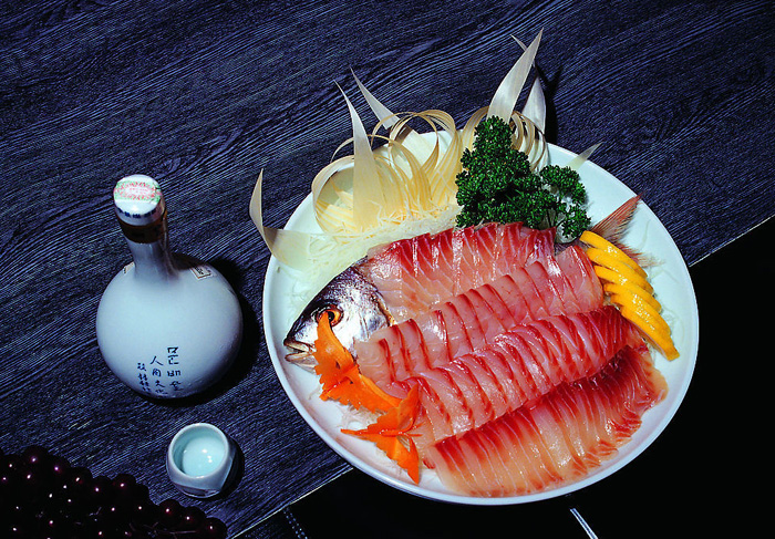 生鱼片(日语中叫"刺身")是日本料理中最有代表性最具特色的食品。江户时代以前,生鱼片主要以鲷鱼、鲆鱼、鲽鱼、鲈鱼为材料,这些鱼肉都是白色的。明治以后,肉呈红色的金枪鱼,鲣鱼成了生鱼片的上等材料。现在,日本人把贝类、龙虾等切成薄片,也叫"刺身"。其中河豚鱼是生鱼片中的佼佼者。