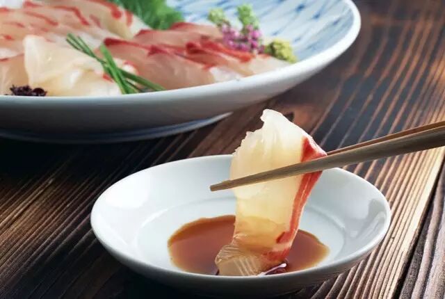 吃生鱼片要以绿色芥末和酱油作佐料。芥末是一种有特殊的冲鼻辛辣味的调料,既杀菌,又开胃,深得日本人的喜爱。生鱼片盘中还经常点缀着白萝卜丝,海草,紫苏花等,体现出日本人亲近自然的食文化。