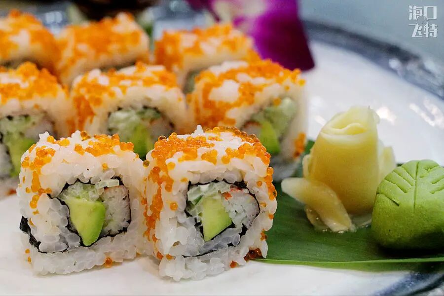 入口咬下蟹籽牛油果卷,先是饱满的蟹籽在口中清脆的爆破,后是寿司米的清甜和牛油果的绵滑,非常有趣的口感。