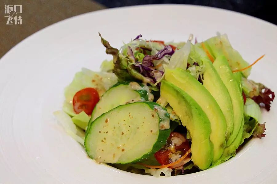 餐前来一碟沙拉,牛油果的清新和蔬菜的鲜脆搭配,浇上一层芝麻沙拉酱,很清新爽脆,满盘都是轻食的健康。