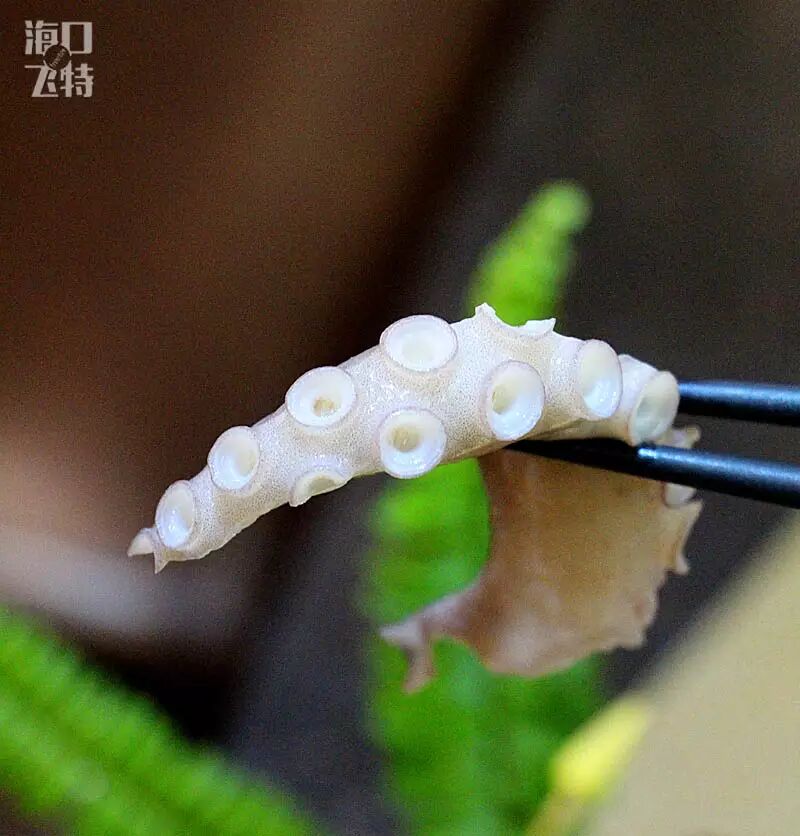 主厨说,“必须趁章鱼还活着时斩下触角,立即稍做汆烫,才能成就这么完美的刺身,这也是现点现做的。”