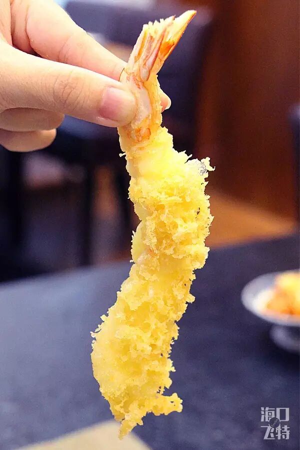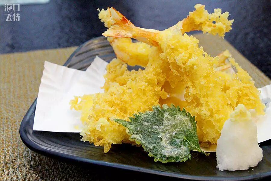 将手掌大小的大虾天妇罗一口咬下去,外层天妇罗的松脆包裹着暖暖的整只大虾,虾肉的本味完整地保留了下来的同时,又带出了炸油独特的清香