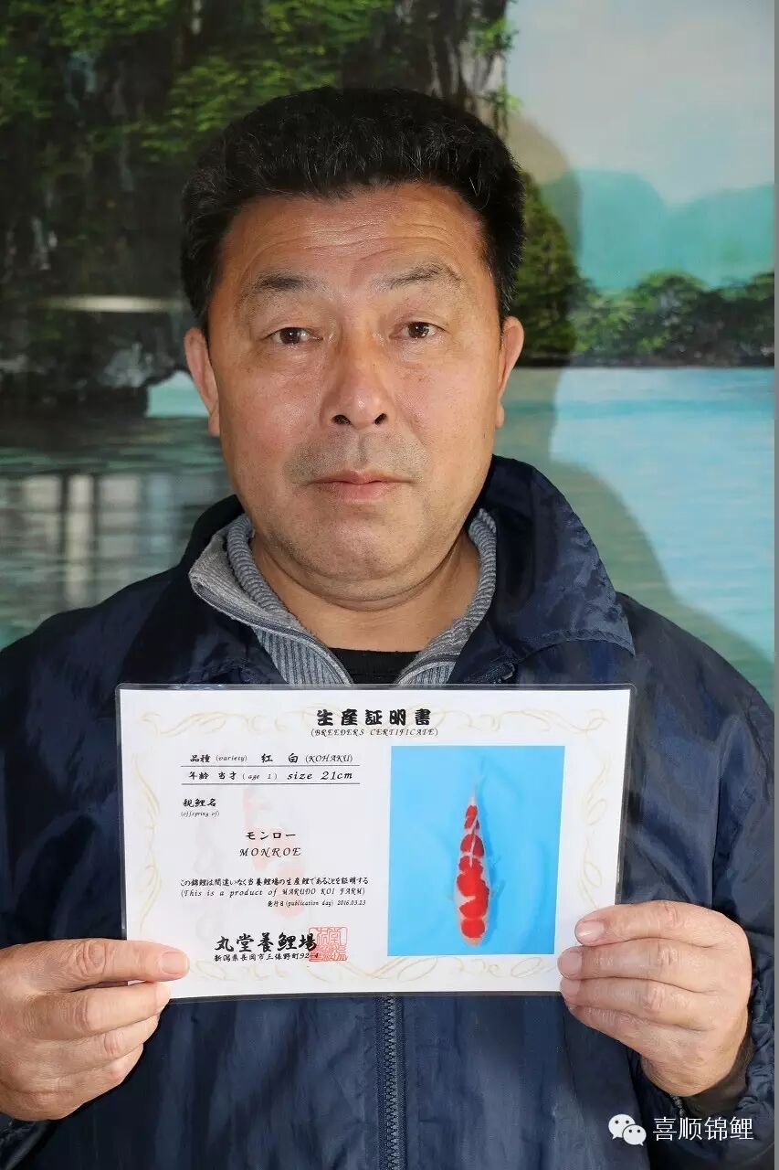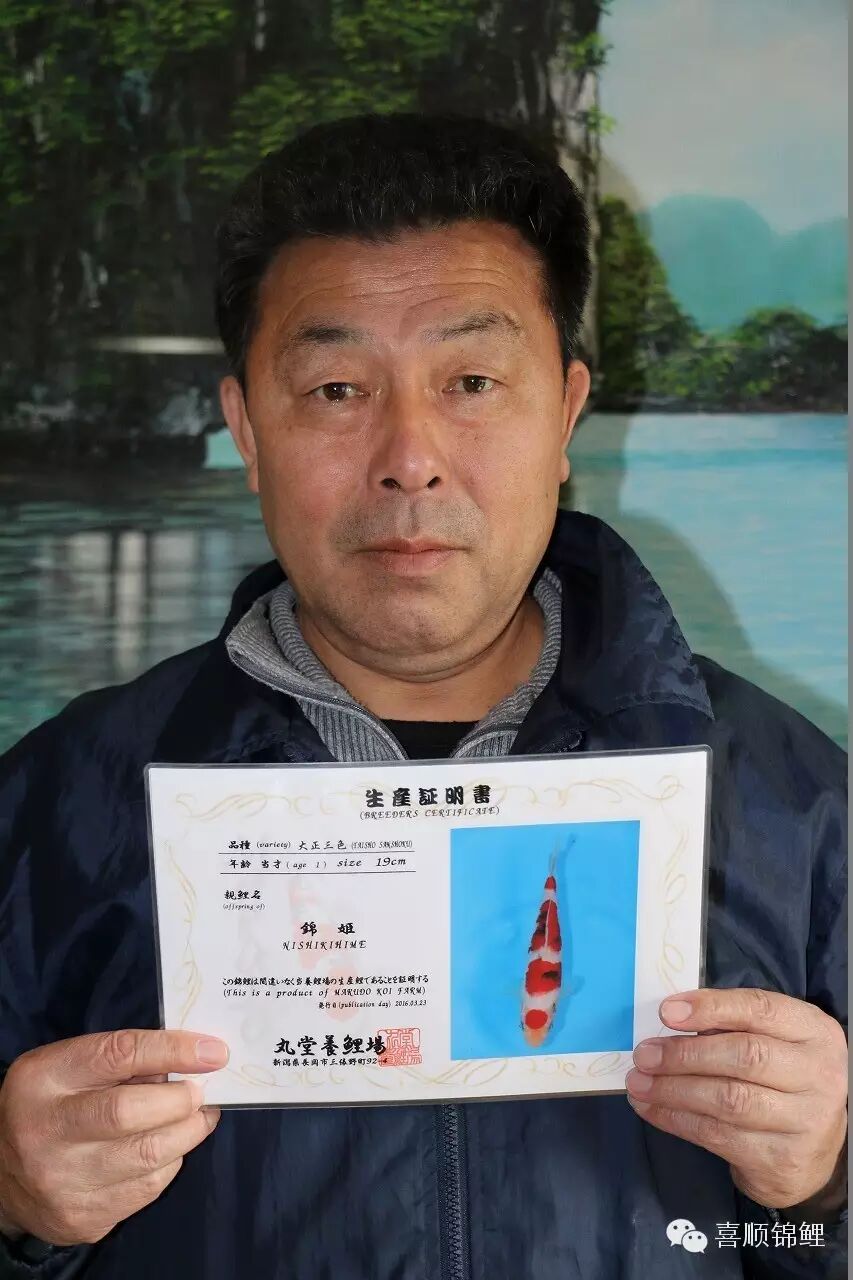 喜顺锦鲤张总因锦鲤结缘,在日本选鱼期间和各大渔场都建立了深厚的友谊!本次喜顺锦鲤与丸堂养鲤场联合,推出7尾立鲤小当岁红白、大正。并于4月23日参加第四回国际锦鲤幼鱼品评会。丸堂养鲤场主要培育红白、昭和三色、大正三色等10余种锦鲤。养鲤场成立至今已有40余年。场主平沢久司先生,早年间在大日养鲤场工作学习18年,是创立大日著名锦鲤品牌的贡献者之一,在对锦鲤体型、质地、模样、花纹的鉴别、饲养等方面都有十分独到的见解和丰厚的经验。作为新一代实力派锦鲤养殖业者,一定会培育出最优秀的锦鲤!![]()