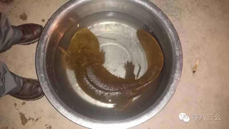 据悉,这条娃娃鱼是16日晚在黄沙镇黄沙河流域被4名在闲暇时间捉泥鳅黄鳝的群众意外捕获的。“当时我们发现水中有一个外表呈黄色的较大活物,开始以为是土鲶鱼,我们就把它赶到浑水里,它就慢慢地走,开始游,也不是很快,我们就马上回去拿了网子。后来倒在脚盆里面就看到手脚什么都有,我们大家都在讨论这个问题,我说肯定是娃娃鱼。因为我们听到说过娃娃鱼是保护动物,然后就打110,看该怎么做。”意外捕获娃娃鱼的张建波激动的向记者讲述了当时的情况。