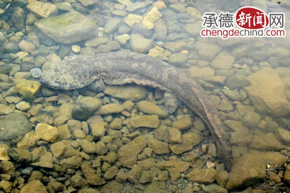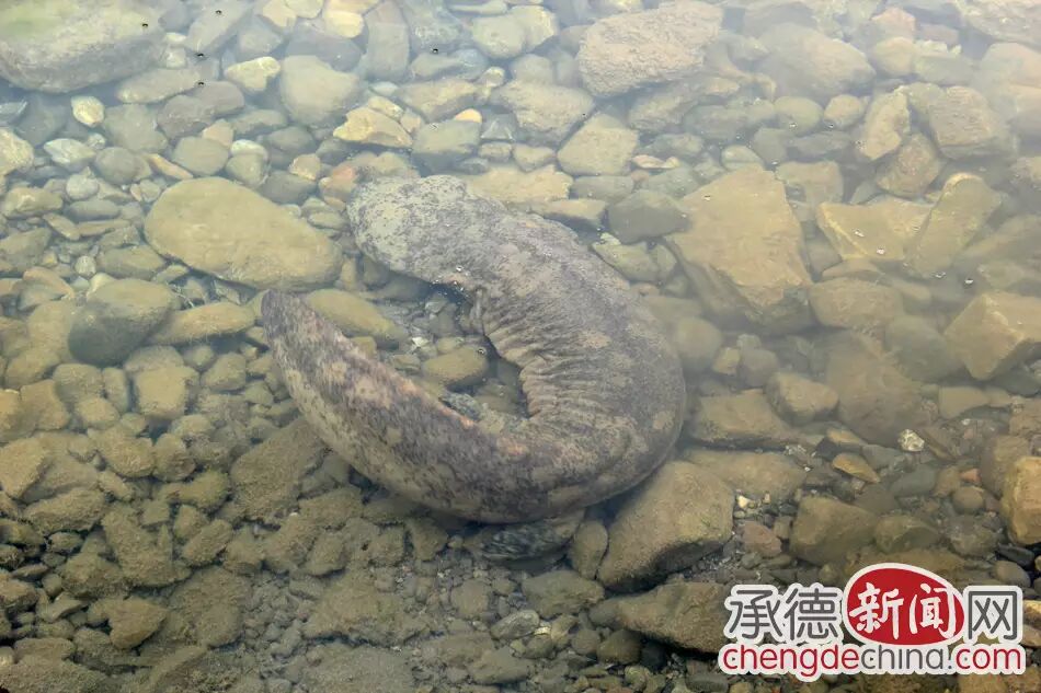 6月19日,在兴隆红河漂流景区上班的保安刘长会,像往常一样到漂流河道内查看情况,不经意间发现河道边有一个黑色物体,不时发出叫声,走近一看像是一条大鱼,鱼头像鲶鱼呈黑褐色,头部特别大扁平,扁平的大嘴,黑黑的小眼珠,还长有四肢,好像还有脚趾,体表光滑无鳞,身上有黑斑。