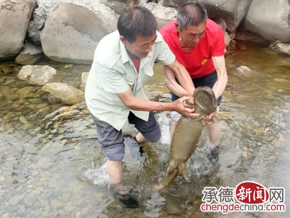 “咱们这条横河几百年了常年留着清水,四季不断,现在整个承德市就剩咱们这条河没有被污染,这条鱼长这么大个,怎么也得在这生长有几十年了,咱们的好好保护”迷子地村的老支部书记看后对大家说。
