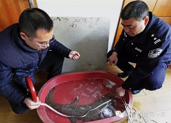经过赶来的渔政专家鉴定,这是条野生娃娃鱼,长1.05米,体重达16斤,实属巨型。