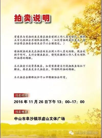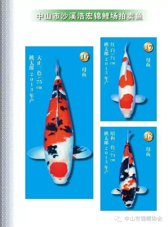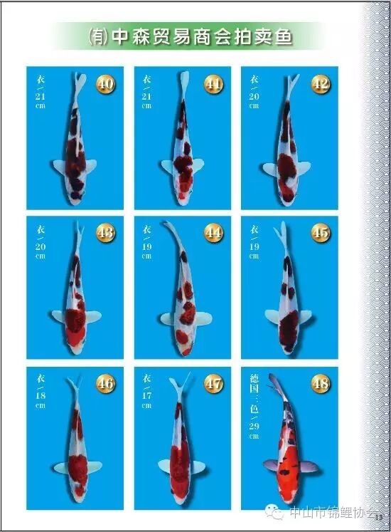 2016中国(中山 阜沙)鱼乐世界嘉年华暨“统一杯”国际锦鲤大赛”于11月25-27日在中山市阜沙镇浮虚山文体广场举行,拍卖会定于11月26日。此次拍卖会分别由佛山川岛锦鲤养殖有限公司、日本中森贸易商会、广东惠州东江养殖场、大信锦鲤、中山市沙溪浩宏锦鲤场、海州锦鲤合作社·大和苑等6个锦鲤单位提供48尾优质的锦鲤进行拍卖。现在就让我们来抢先目睹一下拍卖鲤的风姿吧!!!