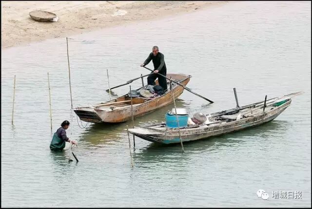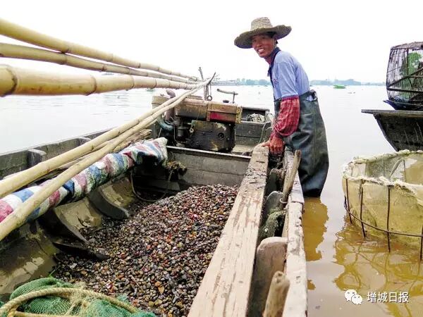 如今的增江河上,每天仍有20艘捞沙蚬的小船来回穿梭,船主均为岳埔村的蚬农,他们常年飘荡在河上,以捞蚬为生。