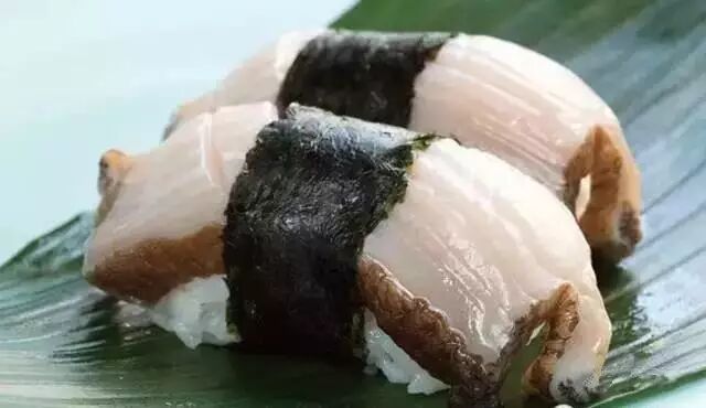 ▼当地除了直接将鲜鲍做成刺身外,还会做成手握寿司。