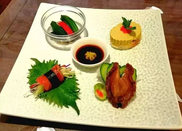 ▼现在我们就来看看中国大厨带来的顶级鲍鱼宴吧!首先,精美的凉菜四拼,鲜艳的颜色搭配就非常吸引眼球,将鲍鱼做成凉菜也比较少见,这次大家可以品尝到鲍鱼的新鲜吃法了!