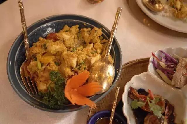 咖喱算是东南亚最具有代表的食物了,蓝象的咖喱蟹也是名扬在外的招牌菜之一,推荐率高达百分之百。肥大的鲜蟹过油后放在煮好的咖喱中蒸煮,咖喱的味道慢慢渗入蟹中,既保持了鲜甜的肉质又融合了咖喱的香浓滋味,简直让人欲罢不能。