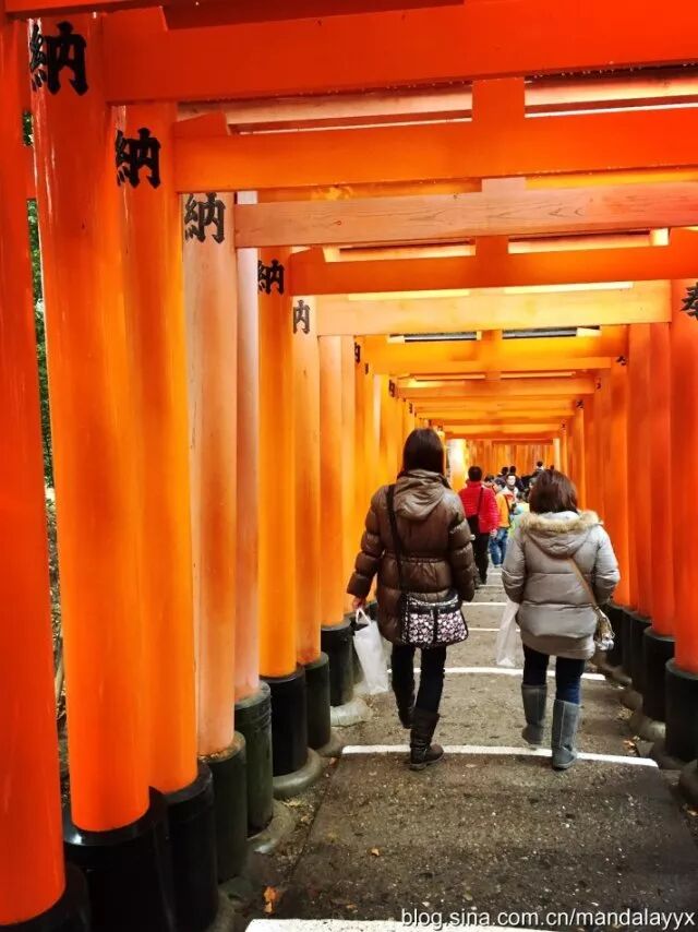 京都的伏见稻荷大社是供拜稻荷大神的地方,稻荷神是保佑商业繁荣、五谷丰收的农业之神,这里香客众多,最出名的要数神社主殿后面成百上千的朱红色「千本鸟居」建筑了。这些京都代表性的景观在电影《艺妓回忆录》里也出现过。朋友介绍说,稻荷大神的原型是一只狐狸(难怪可以见到很多狐狸雕像,连许愿用的许愿版都是狐狸的形状),它最爱的食物就是豆皮,所以一定要在伏见稻荷大社的半山腰小店里尝试地道的豆皮寿司。千本鸟居所在的地方是大约2小时的山路,不要忘记穿一双舒适的登山鞋,冬天来这里保暖工作也要做好,毕竟是深山老林比较寒冷。