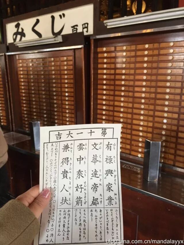 喜欢浅草这个区域的名字,乍听之下莫名的感觉一股日本的樱花香气。但真实的浅草却没有想象中的宁静致远,而是十分热闹的旅游胜地。浅草的雷门寺前的商店街又是一个人让目不暇接的杂货小吃一条街,沿着热闹的街道走至寺庙深处,求一个保护平安的御守,或者投100日元求一个签,虽然不是信徒,但这样的入乡随俗的体验倒是可以感受一下。没想到还求了一个大吉上签:)这里求签时也无人看守,游客都自觉的投币摇签子。寺庙内的安静和四面外的嘈杂仅仅在一门之间,仿佛一道无形的神障隔离了外界的喧嚣,别有一番风味。
