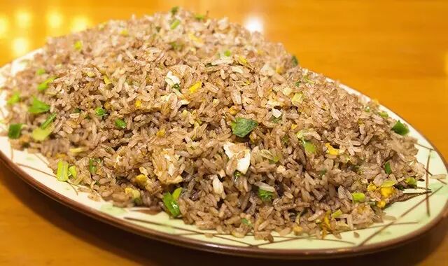 D款炒饭就放左水鱼血、鸡蛋、葱粒,粒粒分明,好干身,食落甘香可口,淡淡的葱香味在口中散发,仲可以滋阴补血,女士佳品,值得一试!