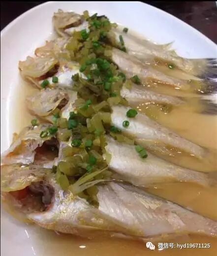 还有一道鸡汤大黄鱼也不错,在家里我也仿制过,很受欢迎。这道鱼的原材料是大黄鱼,超市里和某宝有卖的,叫透鲜大黄鱼,真空包装需要冷藏的那种比较好。朋友们知道我是吃货,有时家里不知道怎么料理的就会送给我,只要不是保护动物,我一般来者不拒,这种大黄鱼我就收到过好几条。大黄鱼与黄花鱼是两种鱼,现在都可以养殖了,但黄花鱼要更贵些,野生的黄花鱼更是天价,也不会用来腌咸鱼。家里做也很简单,可先用清水泡了,防止过咸,因不象酒店可以常备鸡汤,我是用鸡汤浓汤宝温水加料酒化开代替。锅上汽后,将泡过水的鱼用厨房纸巾擦干水,放进稍深些的盘,淋上调好的汤汁,因是咸鱼,自不用放盐,十几分钟出锅,上桌前撒上些碎香葱。此种做法,即保留了鲜鱼的鲜味,又突出了咸鱼的咸香,鱼肉绵软而有弹性,飘着淡淡葱香,入口弹牙,实是下酒就饭的好物。