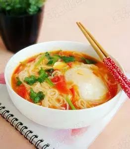 材料:面条、西红柿、鸡蛋、盐、味精、香油、老姜片