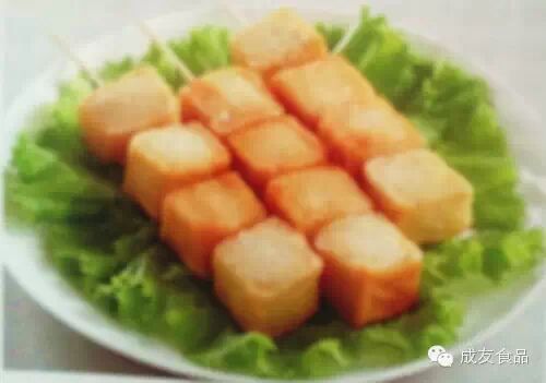 鱼豆腐又称油炸鱼糕,以鱼肉为主料,绞成肉泥配以其他辅料并挤压成型块状,经熟化油炸而成,因其具有金黄色的良好外观,而且能消除腥臭味,受到消费者的青睐。